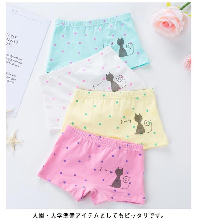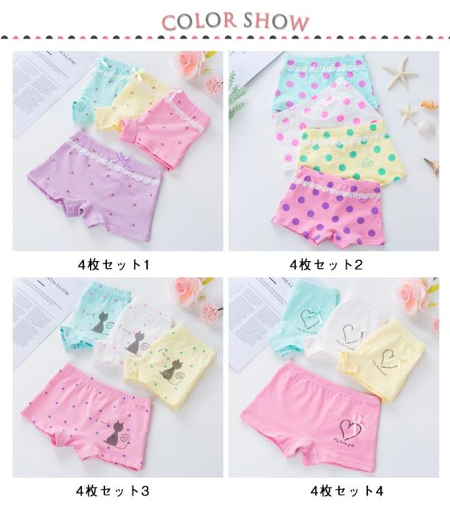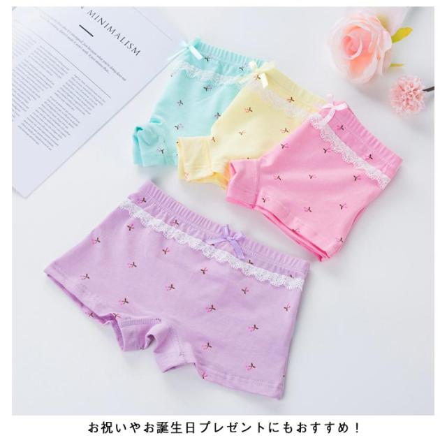 下着 4枚セット キッズパンツ 柔らかい おしゃれ レース ドット柄 かわいい 女の子 子供用 ボクサー 保育園 パンツ ジュニア ショーツ ガールズ 肌に優しい 子供下着 柄入り 下着 ボクサーパンツ 可愛いパンツ 綿 女児