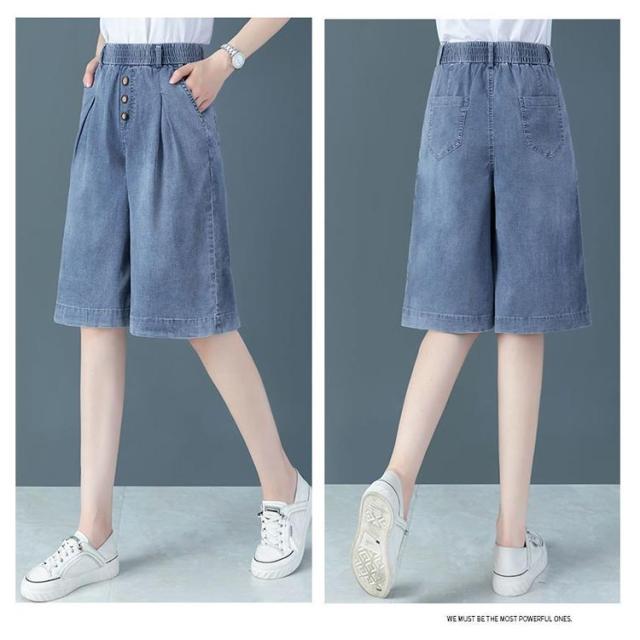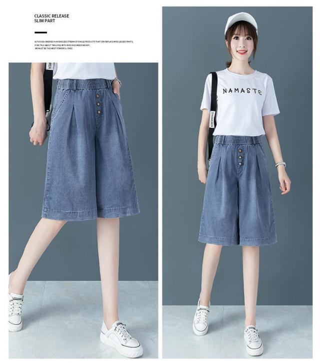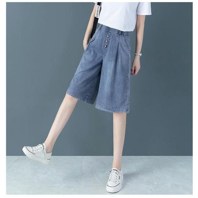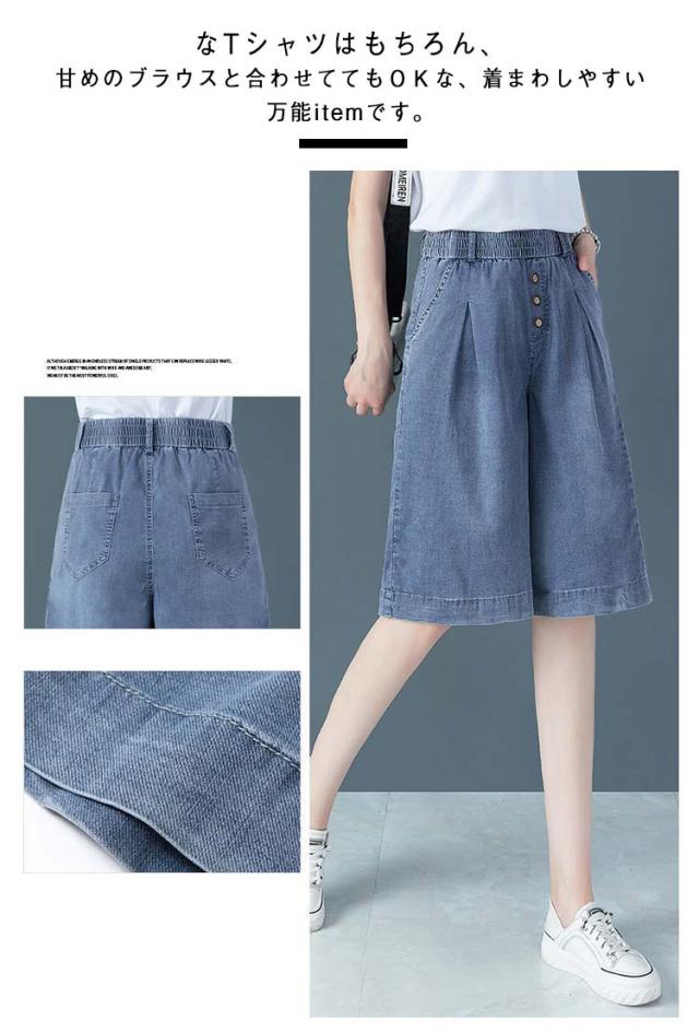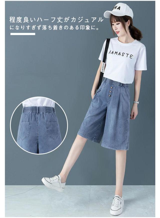 レディース カジュアル デニムパンツ 短パン ハイウエスト 五分丈デニムパンツ ウエストゴム おしゃれ 膝丈パンツ 大きいサイズ デニムハーフパンツ ハーフパンツ ボトムス デニムハーフパンツ ワイドシルエット ハーフパンツ キレイめ 5分丈パンツ 夏 夏服