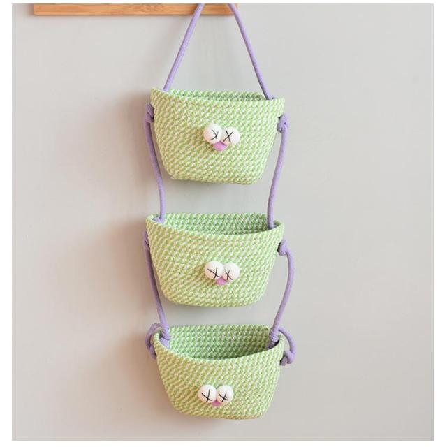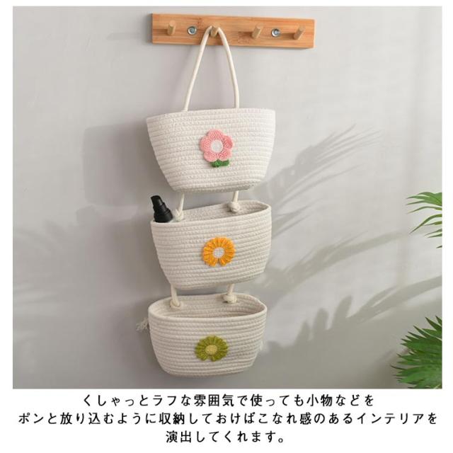 可愛い 壁掛け収納バスケット 壁面装飾 ナチュラル 吊り下げ 小物入れ ウォールポケット 壁面収納 省スペース 壁掛け収納 壁掛け ポケット 壁掛け 収納 壁飾り 壁掛け カゴ 3段 インテリア レターホルダー 壁かけ かご