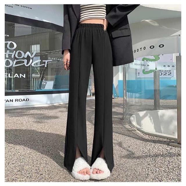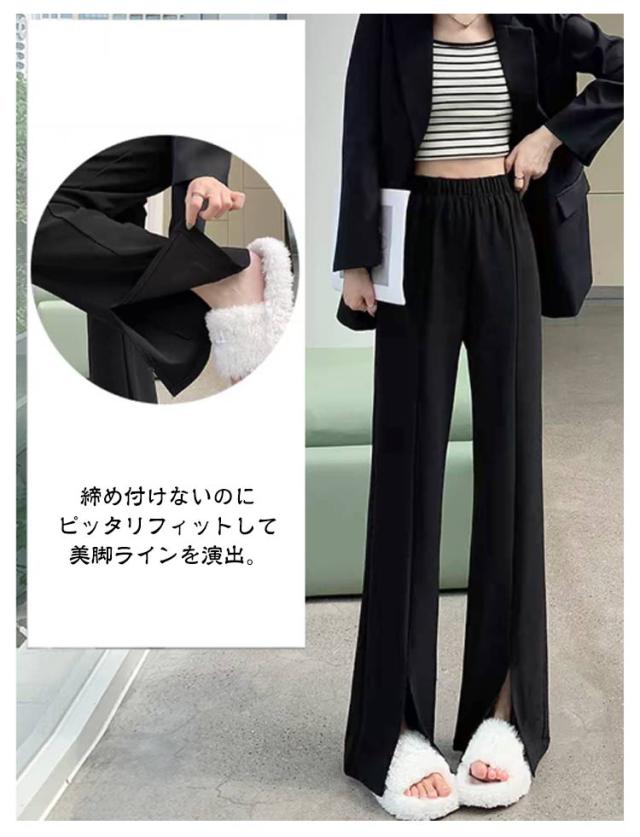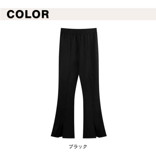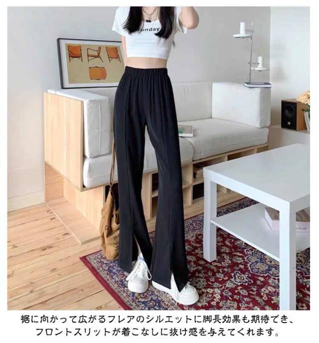 薄手 レディース 秋 スリットパンツ スリットパンツ 落ち感 美脚 快適 おしゃれ ひんやり スキニー センタースリット 足長効果 無地 カジュアル 普通丈 夏 ウエストゴム 上品 クール 接触冷感 フレアパンツ ロングパンツ 9分丈 細見え M