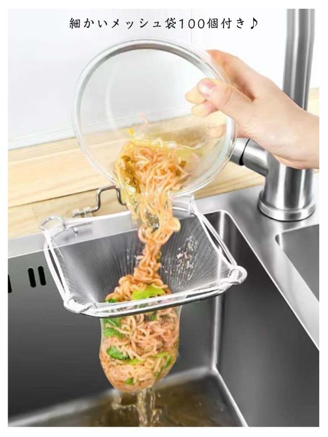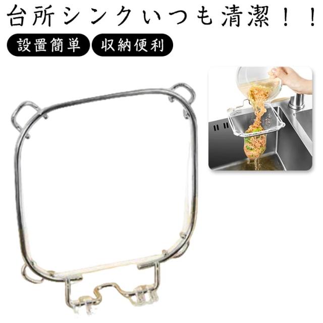 ステンレス 収納便利 ゴミ受け 三角コーナーいらず 折りたたみ さびにくい 三角コーナー 三角排水ラック 水切りホルダー 水切りネット 生ごみスタンド シンク上 台所 キッチン 折り畳み 省スペース 三角コーナー 設置簡単 ごみ受けネット