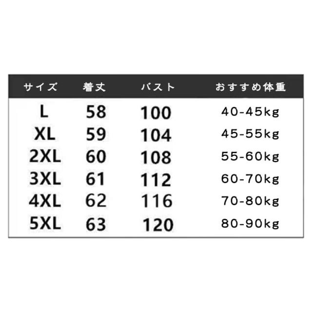 | サイズ | L XL 2XL 3XL 4XL 5XL |