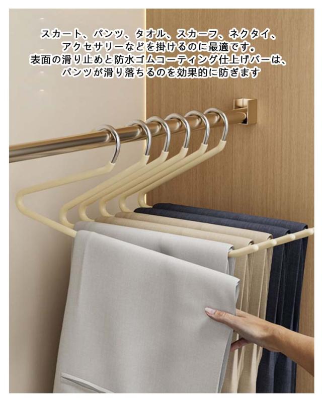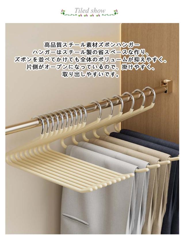 | すべらないズボンハンガー 幅29cm/幅35cm 【10本セット】 高品質スチール素材ズボンハンガー ハンガーはスチール製の省スペースな作り、ズポンを並べてかけても全体のボリュームが抑えやすく、片側がオープンになっているので、掛けやすく、取り出しやすいです。 スカート、パンツ、タオル、スカーフ、ネクタイ、アクセサリーなどを掛けるのに最適です。 表面の滑り止めと防水ゴムコーティング仕上げバーは、パンツが滑り落ちるのを効果的に防ぎます ハンガー全体を取り出し必要がなくズボンを簡単に掛けたり取り出します。 ハンガーは非常にスリムなので、片手でパンツをかけられるし、クローゼットの中がかさばらずスッキリとまとまります。 ポイント1 ラバーキャップ付き フック先端部は美しく安全なラウンドフォームで服や指に引っかかることがありません。 ポイント2 ノンスリップ加工 表面の滑り止めと防水ゴムコーティング仕上げバーは、 パンツが滑り落ちるのを効果的に防ぎます。 ポイント3 UPSWEPTリア 緩やかにカーブしたバーはズボンが掛けやすく、落ちにくいです。 スッキリ収納♪ 厚さはわずか約0.6cmとスリムに作られているため、クローゼットの中で場所を取りません バータイプの無駄のない形状で衣類をかけるのもラクチン♪ 乾湿両用 洗濯後に濡れた状態のスラックスをかけても安心です、 色移りを気にせず洗濯ハンガーとして使用でき、屋内外で使用できます。 片側が開いているので、 ズボンの掛け外しが横からスムーズにできます。 耐荷重約5kg スチール素材でできているので、 デニムのような重たい衣類をかけてもOK。 | |
