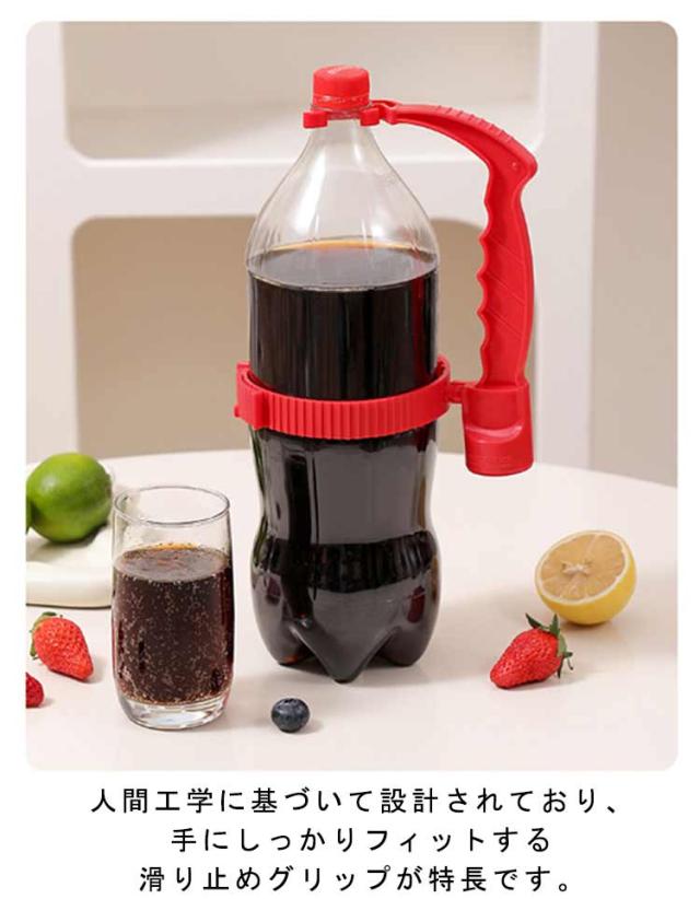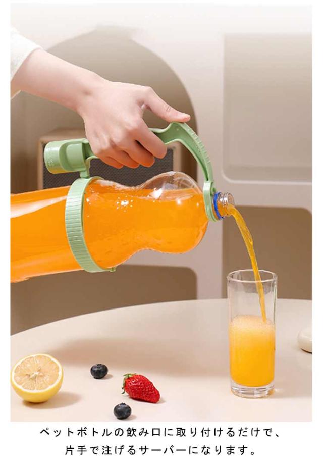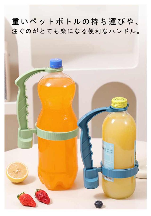 | 重いペットボトルの持ち運びや、注ぐのがとても楽になる便利なハンドル。 ペットボトルの飲み口に取り付けるだけで、片手で注げるサーバーになります。 人間工学に基づいて設計されており、手にしっかりフィットする滑り止めグリップが特長です。 直径9.5-14cm調節可能でほとんどのペットボトルに装着できます。 栓抜き付きなので硬いキャップも取り外し可能です。 | |