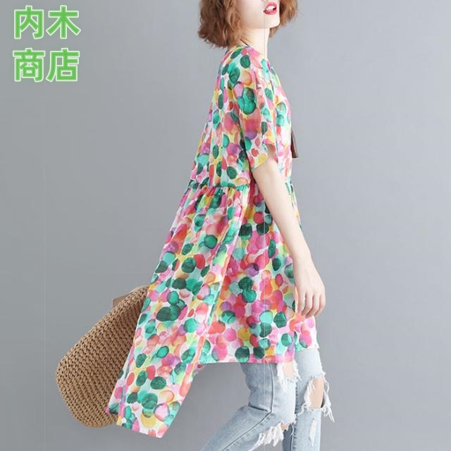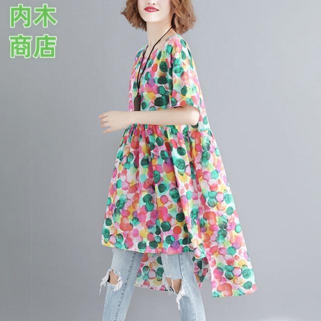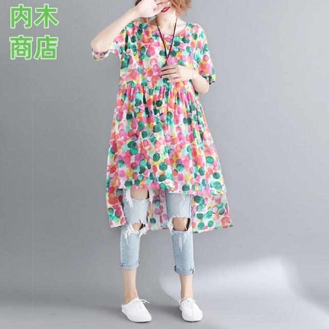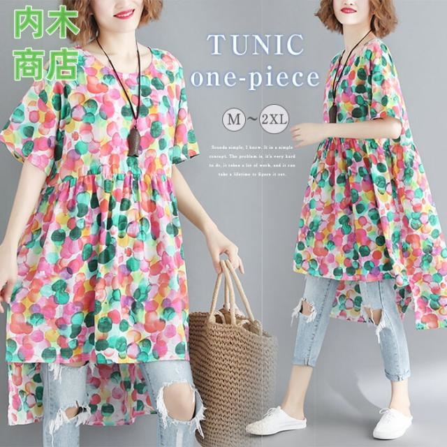 チュニック 大人可愛い チュニック ワンピース 大きいサイズ ゆったり 水玉柄 ドット ブラウス レディース チュニックブラウス 春夏 ワンピ レース Aライン 膝丈 アシンメトリー 大人 可愛い 体型カバー 着痩せ おしゃれ 女性らしい おしゃれ きれいめ 送料無料