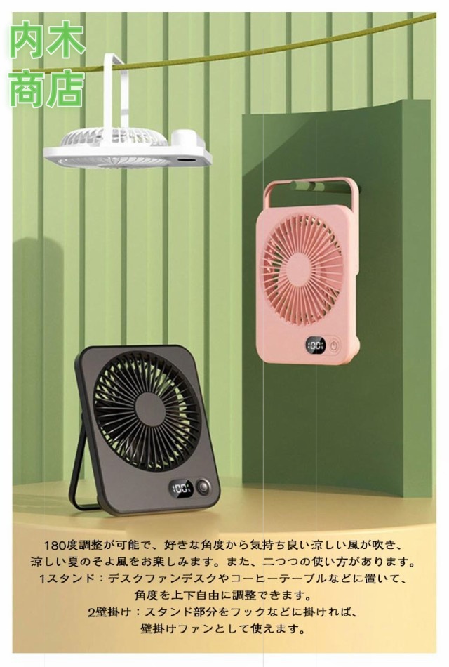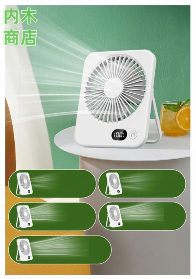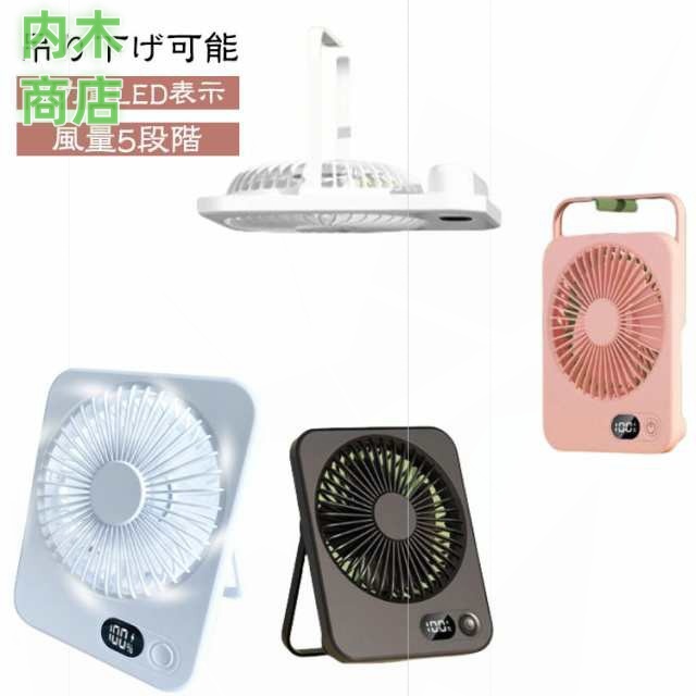 おしゃれ デスクファン 寝室 オフィス コンパクト 軽量 静音 USB 充電式 コードレス 省エネ 携帯扇風機 事務所 卓上扇風機 風量5段階 ミニ扇風機 スリム ポータブル 吊り下げ 小型扇風機 手持ち 節電 ミニ LEDディスプレイ 扇風機 壁掛け