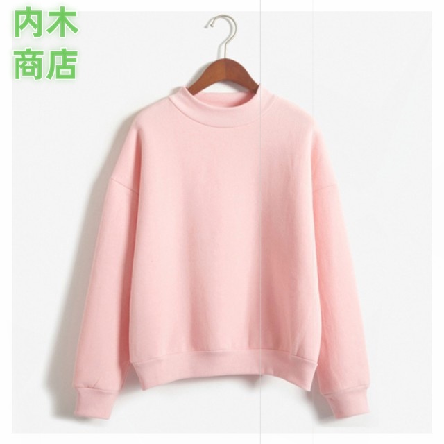 大きいサイズ トレーナー 韓国ファッション プチハイネック 春 長袖 ボトルネック シンプル おしゃれ トップス レディース スウェット 裏起毛 部屋着 大人 メンズ 全10色 かわいい 無地 秋冬 クルーネック ピンク