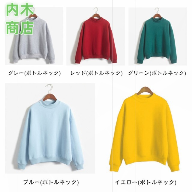 おしゃれ 韓国ファッション ボトルネック クルーネック スウェット 裏起毛 全10色 プチハイネック 長袖 トップス トレーナー 無地 大きいサイズ レディース ピンク メンズ かわいい 大人 部屋着 秋冬 春 シンプル