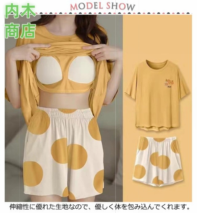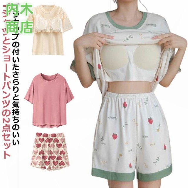 パジャマ セットアップ カップ付き 半袖 レディース夏 ルームウェア 夏 半袖 夏 ショート丈パンツ 2点セット Tシャツ 韓国ファッション レディース 上下セット カジュアル 半袖 短パン 寝巻き ナイトウェア 楽ちん 可愛い