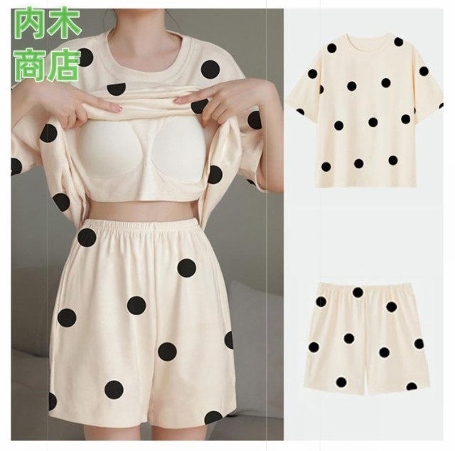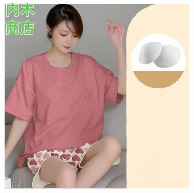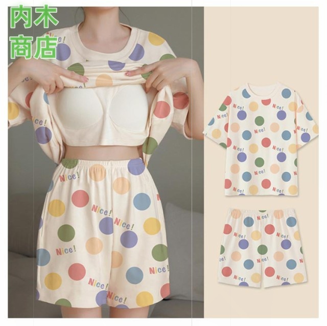ショート丈パンツ 夏 夏 楽ちん カップ付き ルームウェア 半袖 可愛い 半袖 パジャマ 寝巻き カジュアル 半袖 短パン 上下セット ナイトウェア レディース夏 2点セット レディース セットアップ シャツ 韓国ファッション