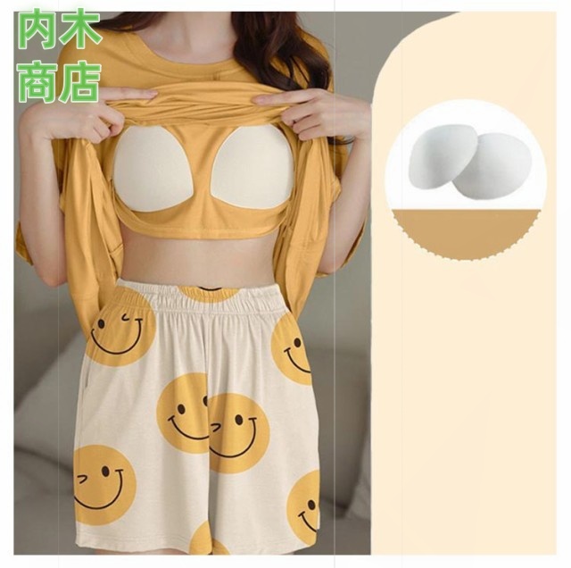 | ブラカップの付いたさらりと気持ちのいいTシャツとショートパンツの2点セット。 伸縮性に優れた生地なので、優しく体を包み込んでくれます。 ブラジャーの締め付け感から解放されつつ、サラサラと心地いいひとときを過ごせます。 部屋着として着るのはもちろん、インナーやジムウエアにもオススメです。 夏のリラックス時間には、カップ付きのルームウェアがおススメ♪ | |
