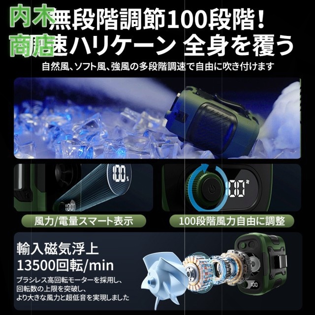 ワークマン 屋外作業 強風 首かけ 100段階風量 充電式 静音 ジェットファン 腰掛け扇風機 扇風機 アウトドア 通勤通学 熱中症対策 携帯扇風機 小型