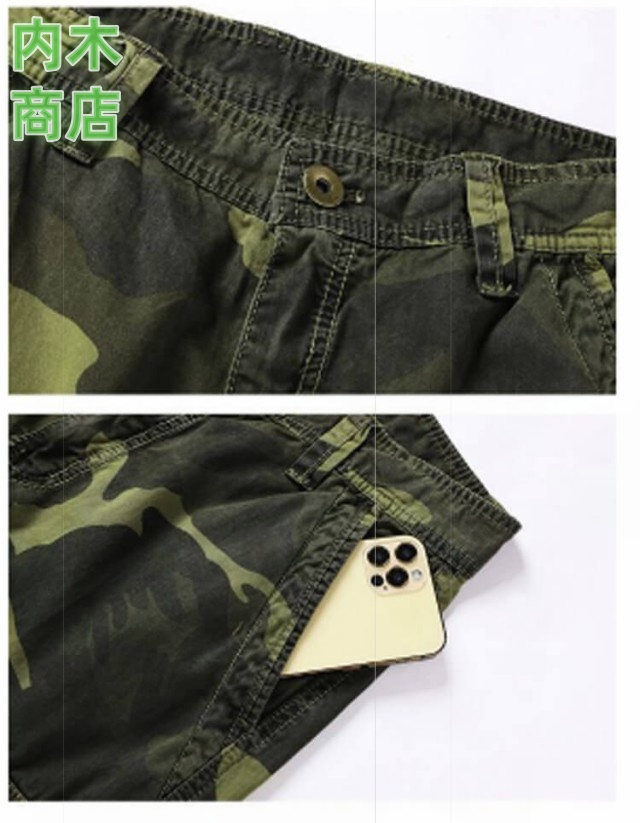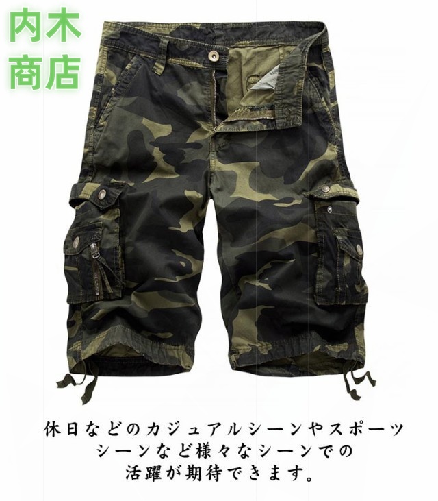 カーゴパンツ 迷彩 ハーフパンツ メンズ カーゴハーフパンツ 膝丈 ショートパンツ 半ズボン ミリタリーパンツ 七分丈 ストリート カモフラ ズボン パンツ B系 ダンス 大きサイズ 六つポケット