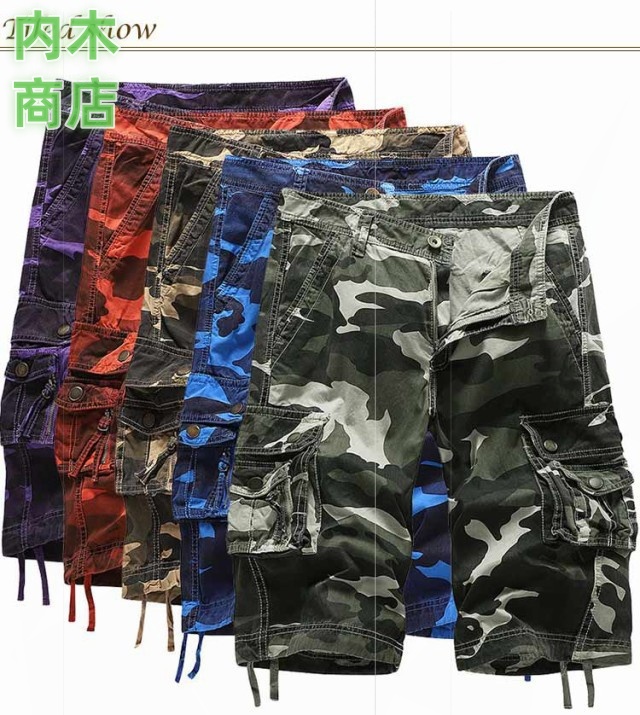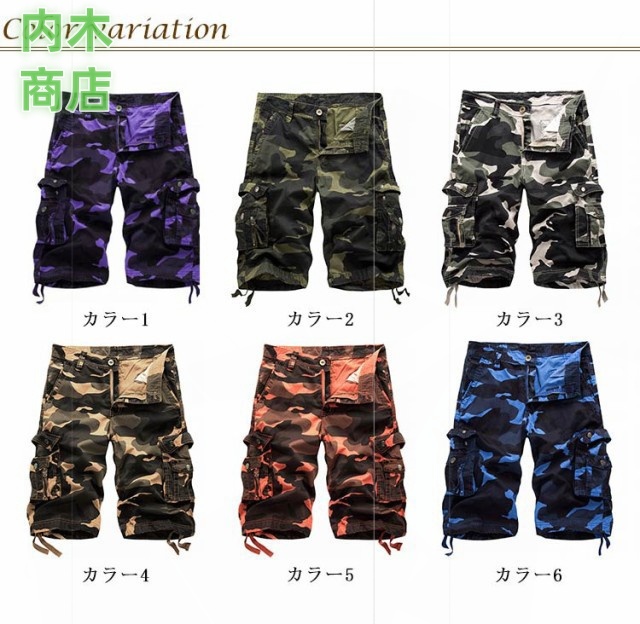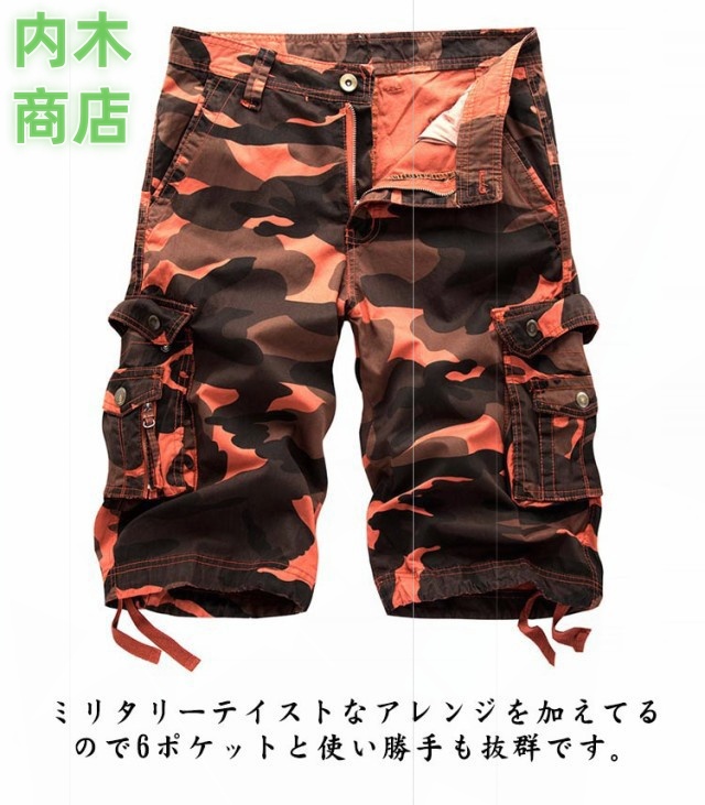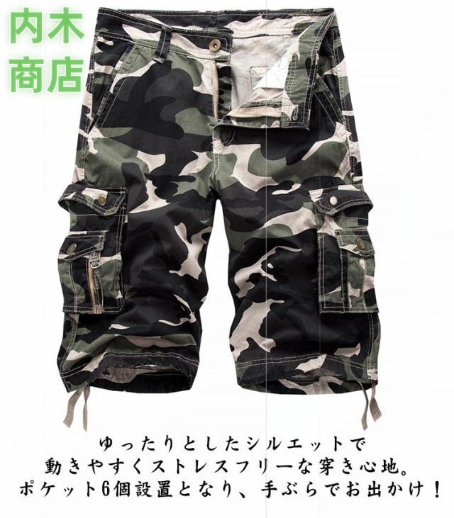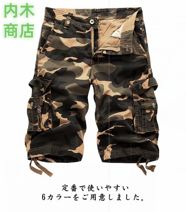 パンツ カーゴパンツ ミリタリーパンツ ハーフパンツ ショートパンツ ズボン 七分丈 半ズボン 膝丈 カモフラ B系 ストリート 大きサイズ 迷彩 六つポケット メンズ カーゴハーフパンツ ダンス