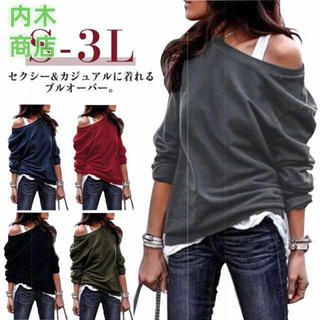 売上急増中 レディース 軽量仕様 在庫限りの大特価 ギフトにも最適 カジュアル プルオーバー Tシャツ 今だけ 肩出し 大きいサイズ トップス 肩見せ 肌見せ 長袖トレーナー スウェット カットソー 個性的 トレーナー 春秋 オフショルダー 即納対応中