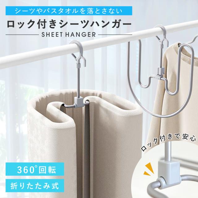 シーツハンガー ループハンガー スパイラルハンガー ロック付き 折りたたみ式 省スペース 360°回転 落下防止金具つき 通気性 くるくる ハンガー 物干しハンガー 部屋干し 室内干し シーツ バスタオル タオルケット 浴室乾燥 新生活 洗濯 収納 便利グッズ sp-hanger04