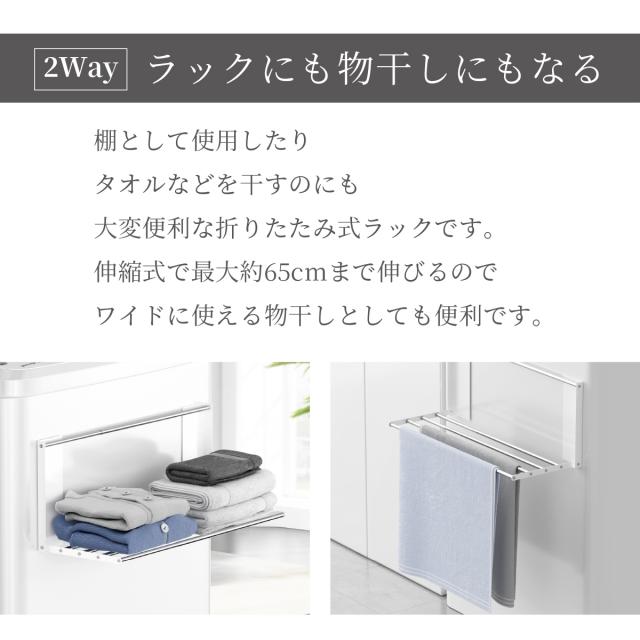 洗濯機横マグネット折り畳み棚 着替え 折りたたみ ラック パジャマ タオル ランドリー収納 強力 コンパクト たためる 洗濯機前 タオルラック バスタオル シンプル おしゃれ 省スペース sentaku-rack