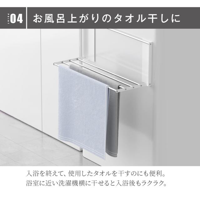 【お風呂上がりのタオル干しに】入浴を終えて、使用したタオルを干すのにも便利。浴室に近い洗濯機横に干せると入浴後もラクラク。
