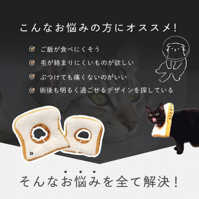 去勢や病気による手術後の傷をひっかいたり、過剰なグルーミングによる舐めハゲを防ぐためのエリザベスカラーに可愛い食パン型が登場!