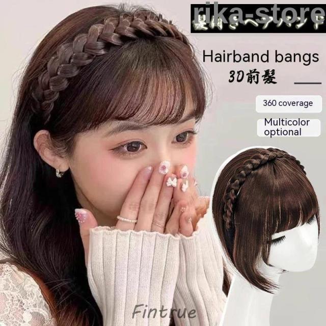 3D前髪ウィッグ つむじ カチューシャ付き 耐熱繊維三つ編み 前髪 髪留め ヘアバンド 髪飾り ヘア 滑り止め 痛くない かわいい