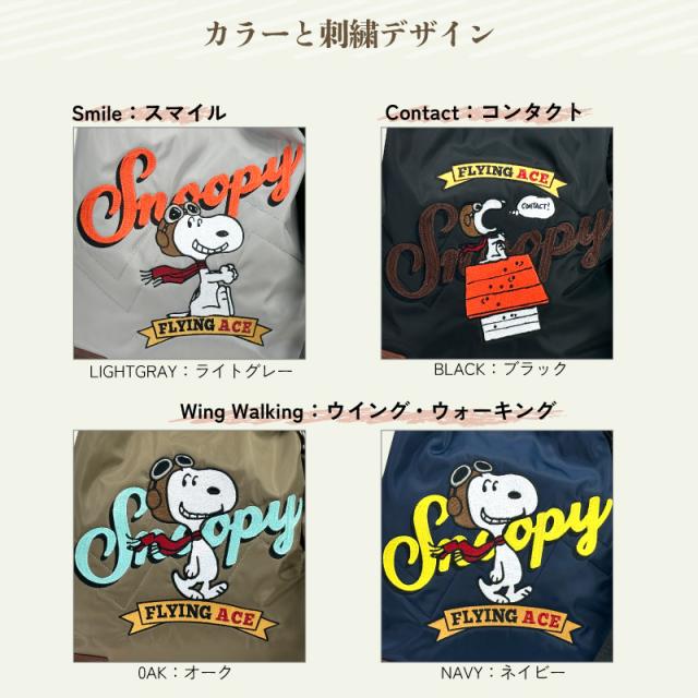 ・スヌーピーたちの刺繍をポイントにしたカジュアルなデザインです。