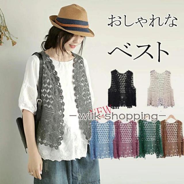 トレンドの透かし編みでインナーとのレイヤードスタイルを楽しめるレースベスト。