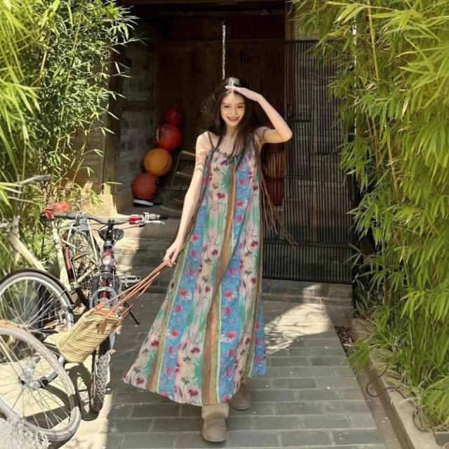 キャミソールワンピース 花柄 ノースリーブ ロングワンピース ビーチ ミモレ丈 リゾートワンピース レディース ワンピース aラインワンピース