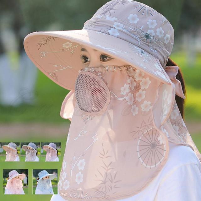 日除けハットUVカット 2WAY 日焼け防止 紫外線対策 ガーデニング キャップ サンバイザー フェイス ネックガード 日よけ 帽子 農作業 花柄 スポーツ