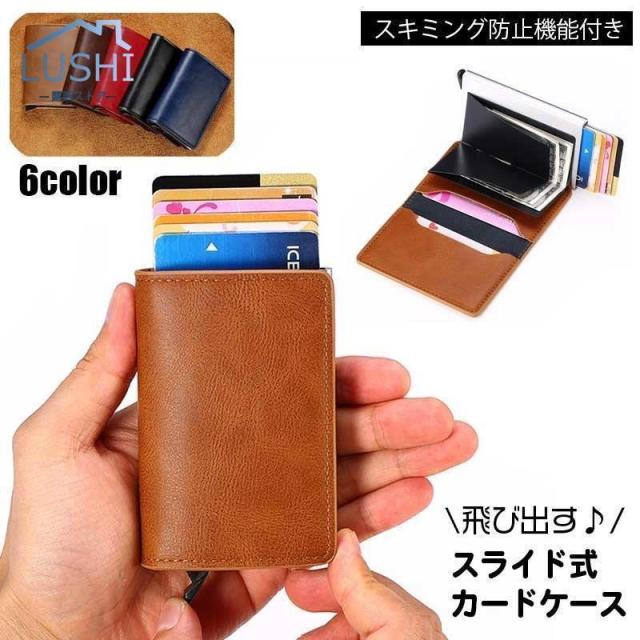 カードケース カードホルダー 7枚 スライド式 カード入れ ミニ財布 飛び出す レザー調 メンズ レディース ポップアップ クレジットカードケース ス