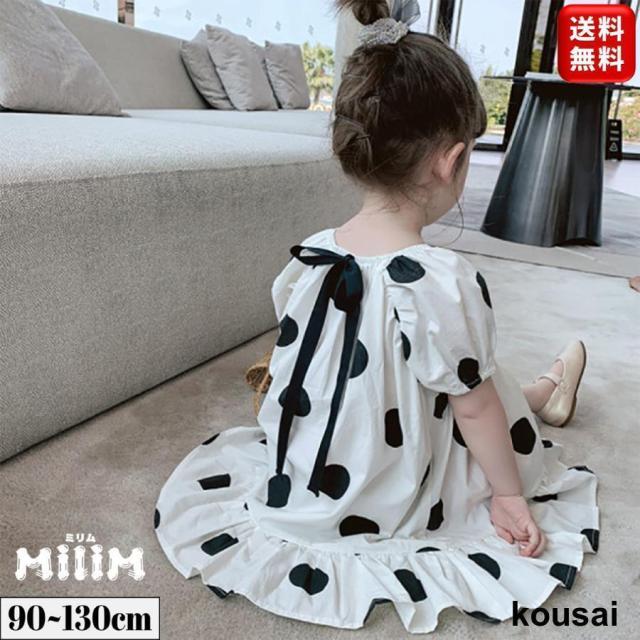 子供服 ワンピース 半袖 ドット柄 水玉 ドレス 春 夏 秋 90 100 110 120 130