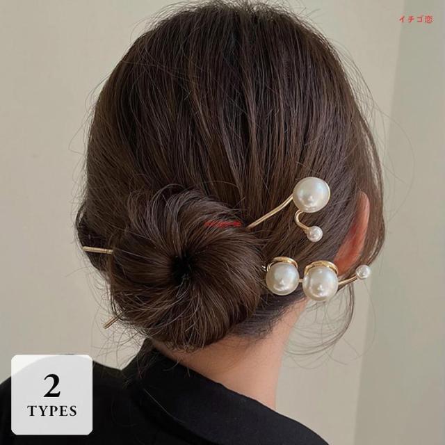 かんざし 二本 普段使い ヘアアクセサリー 髪飾り 髪留め パール 大きい 存在感 大人スタイル 大人かわいい お出かけ