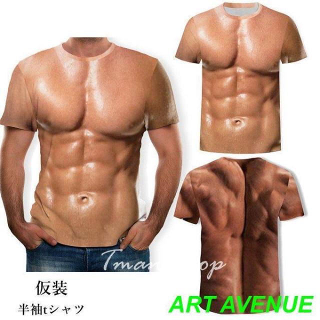 tシャツ 半袖 仮装 筋肉服 マッチョ 偽筋肉 偽腹筋 グラマー男性 仮装 イケメン筋肉 おもしろ お祭り 新年会 忘年会 宴会 夏物
