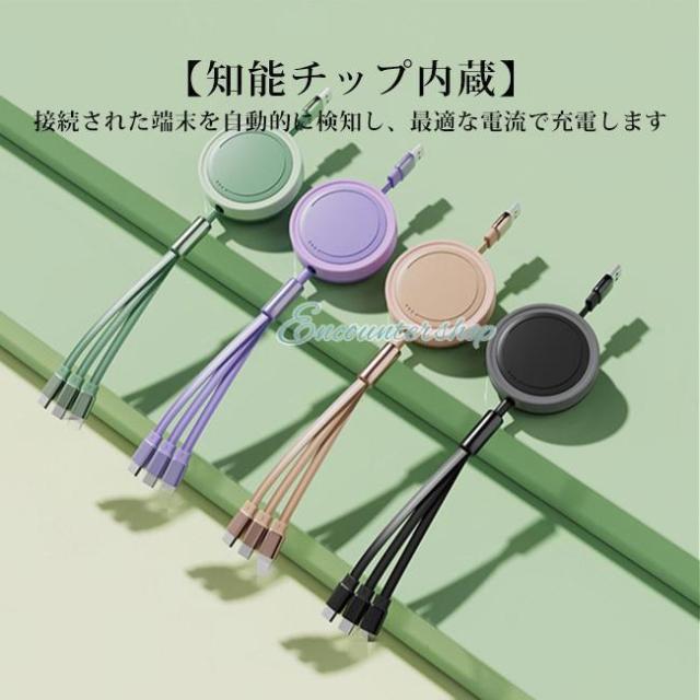 充電ケーブル 3in1 1.1m 巻き取り iPhone タイプC Type-c 急速 USB ケーブル 3a Micro USB Android Lightning ios 短い 充電器 高速