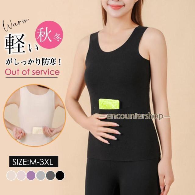 タンクトップ 発熱インナー レデイース 無地 暖かい 発熱 秋冬 カイロポケット付き お腹 腰 レディース 冬用 温かい