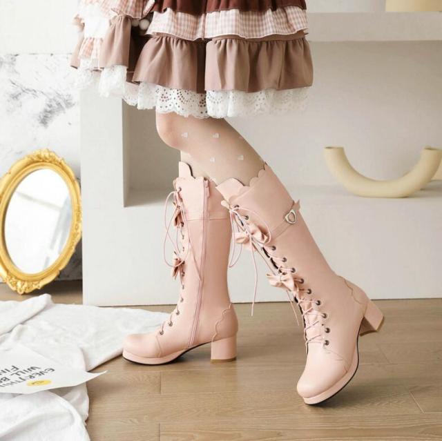 ロングブーツ レディース レース 秋冬 森ガール ロリータ靴 可愛い 姫様ブーツ 美脚 お嬢様 女の子 おしゃれ 日常 美脚 お茶会
