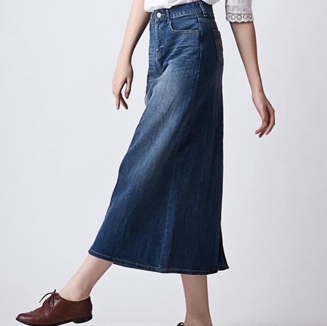 デニムスカート レディース ロングスカート デニム フレアスカート ヴィンテージ加工 ウエストゴム デニム マキシ丈 ゆったり 大きいサイズ