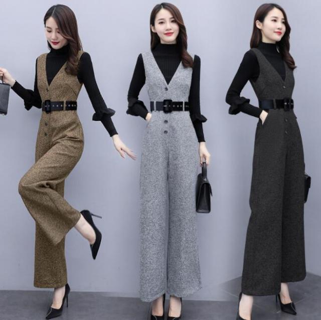 オールインワン セットアップ レディース パンツドレス ロングパンツ セパレート テーパードパンツ ニット秋冬 セットアップ風 大きいサイズ