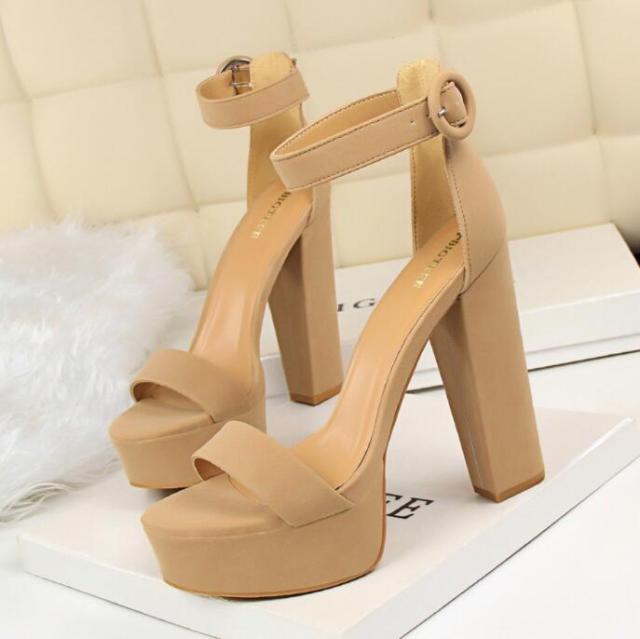 アンクルストラップサンダル オープントゥ 厚底サンダル結婚式 キャバ アンクルストラップ 美脚サンダル 太ヒール ハイヒール パーティー