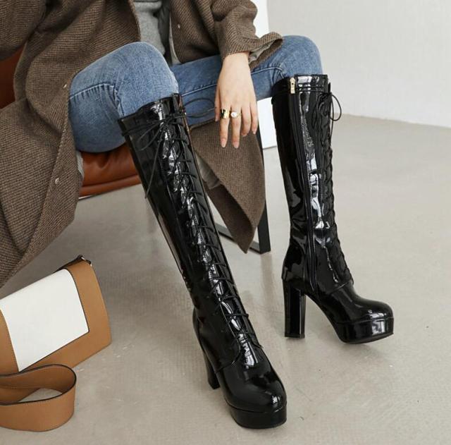 レディースブーツロングブーツニーハイブーツエナメル大きいサイズロング丈ダンス舞台靴 レディース靴 ブーツ その他
