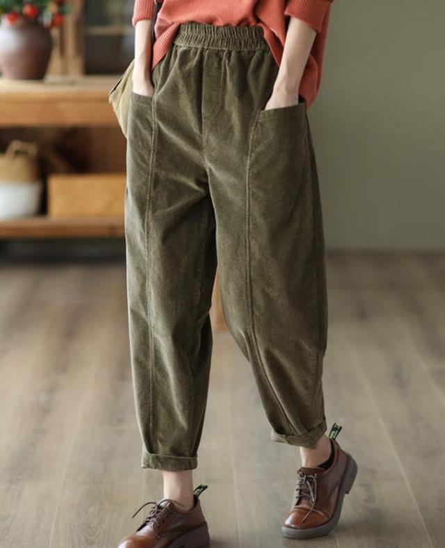 コーデュロイパンツ レディース ロングパンツ サルエルパンツ コーデュロイ ポケット付き ウエストゴム ゆったり サルエル ゆるパンツ