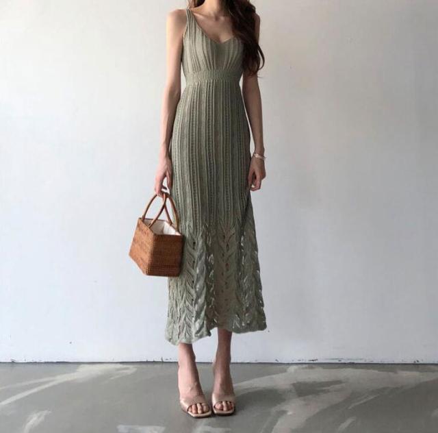 ワンピース 春 きれいめ ロングワンピース 夏 マキシワンピース ノースリーブ ワンピース レディース 韓国 タイト ニット 大人 セクシー 可愛い カジュアル