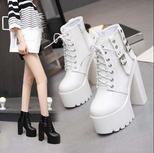 ショートブーツ レディース レースアップショートブーツ 厚底 ショートブーツ シンプル レースアップブーツ 靴 美脚 ブーティ 太ヒール