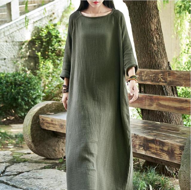 リネン ワンピース リネンワンピース ワンピース レディースファッション ナチュラル 5分袖 麻ワンピース 無地ワンピース