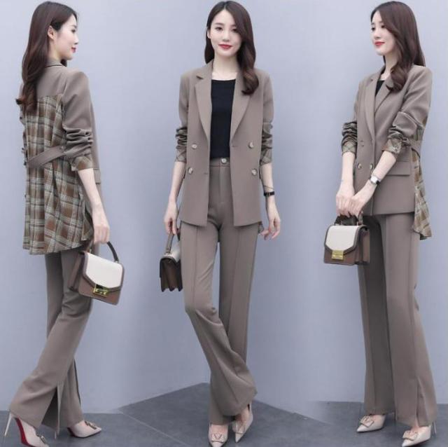 スーツ パンツスーツ フォーマルスーツ レディース セットアップ チェック柄 チェック ジャケット パンツ ワイドパンツ ガウチョパンツ ママ 母 2点セット