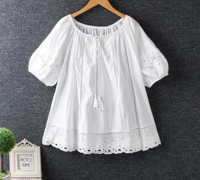 ブラウス トップス レースブラウス レディース ブラウス 半袖 トップス 大人 可愛い 丸襟 トップス ブラウス 森ガール