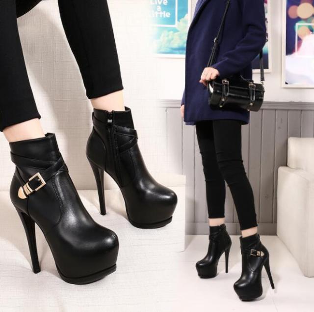 ショートブーツ レディース サイドゴアブーツ ベルト付き チャンキーヒール 疲れない ブーツ 厚底 靴 黒 ブーティハイヒール 厚底靴 靴