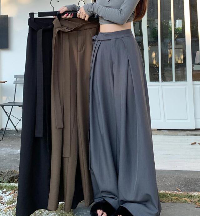 ハイウエスト 美脚 脚長 ストレートパンツ レディース ボタンストラップ ワイドパンツ 女性 ボトムス ワイド パンツ ハイウエストパンツ