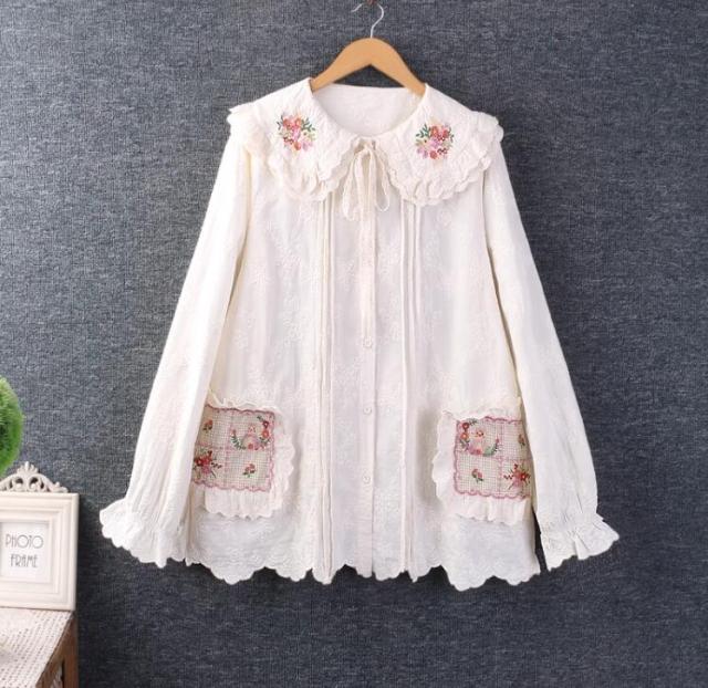ブラウス トップス レースブラウス レディース ブラウス 長袖 トップス 大人 可愛い 丸襟 トップス ブラウス 森ガール