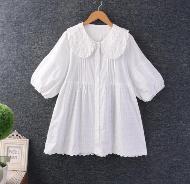 半袖ブラウス トップス レースブラウス レディース ブラウス 半袖 トップス 大人 可愛い 丸襟 トップス コットンブラウス 森ガール 大人