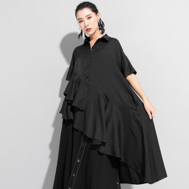 アシンメトリーワンピース ロングシャツ レディース 春 夏 秋 半袖 アシンメトリーシャツ ロング シャツワンピース モード系 個性的 変形デザイン おしゃれ
